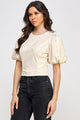 BLUSA DE MANGA CORTA CON PERLAS EFECTO PIEL